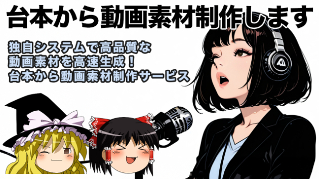 以前に「ゆっくり解説動画制作」の商品をご提案させて頂いてたのですが、ご相談頂いてもご予算と合わない、と流れてしまったケースが多々ありました・・。なんとか安価に、と価格設定もしていたのですが、ゆっくり解説動画は細かい調整などを行う必要があるので非常に時間が掛かってしまいます。