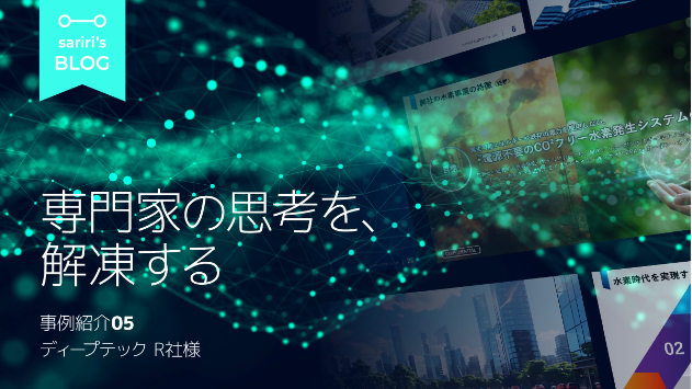 私は過去に事業会社で、エネルギー・交通などインフラ領域の技術者にデザイン支援を行い、理系の考えや技術をビジネス文脈で表現してきた経験があったため、R社さまの支援も可能と判断し、本件をお引き受けしました。