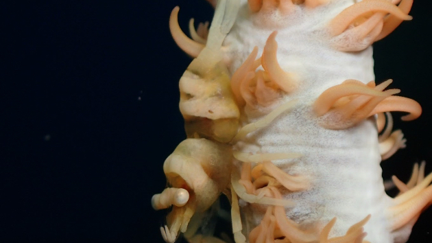 このムチカラマツにくっついて生涯を暮らすエビちゃんです!