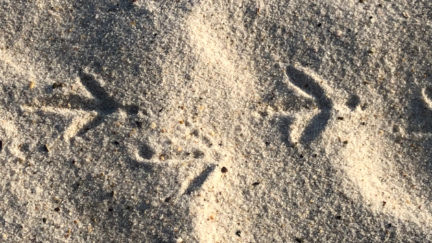 砂浜をあるく、鳥の足跡がとても可愛く