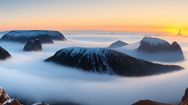 山頂の高い山頂に広がり、まるで夢のような雲の世界。