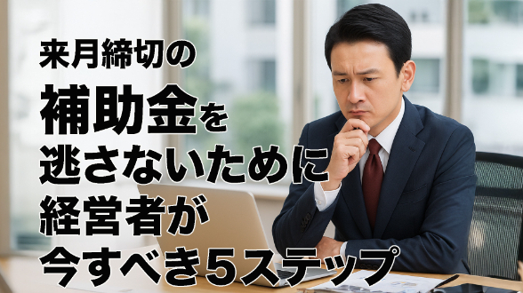 本コラムでは、来月の締切に間に合わせるために経営者が今すぐ着手すべき5つのステップを整理し、具体的に解説していきます。