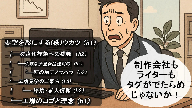 「これからホームページ制作を依頼しようか」という中小企業の経営者や商店主がタグや構造の知識を持っていることはまずはないでしょう。日常生活で触れるようなものではありません。