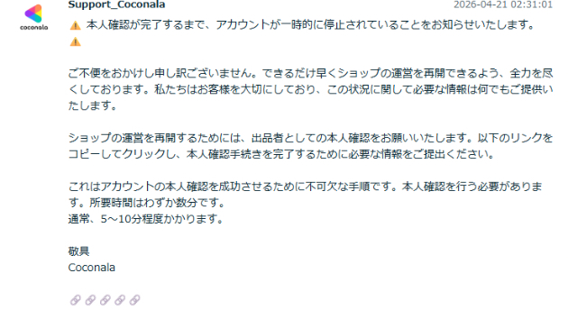 ・アイコンが同じのが2通・ココナラ公式アイコンを使用したのが1通本文内容はサムネイルに書いてある通り。さすがに3通もきた...