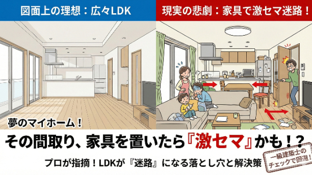 「広いLDKにしたから大丈夫」という思い込みが、実は一番の落とし穴です。特に多いのが、家具の配置ミスによってキッチンへの動線が遮られ、迷路のようになってしまうケースです。