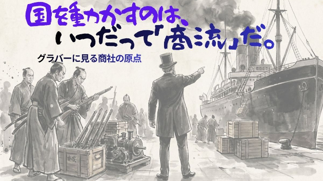 その際、重要なのは「すべてを自前で行う必要はない」ということです。 国家としての商社機能が未成熟だった段階で、彼らは外部に存在した商社機能=グラバーという仲介資源を最大限活用し、不足する外交力・金融アクセス・物資ルートを補完しました。