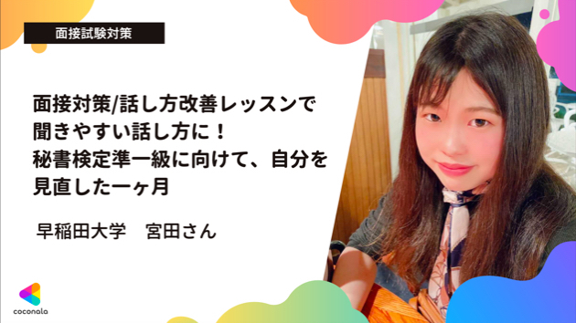 準一級では筆記試験もあるため再度ココナラのサービスを使って採点をお願いしたいです。加えて面接は長期間かけて対策していかなければ身につかないため、声・表情のトレーニング並びにアルバイト等で敬語を実用し慣れていきたいと考えています。