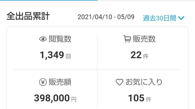 ちなみに、毎日の閲覧数、販売数、販売額、お気に入り数は、