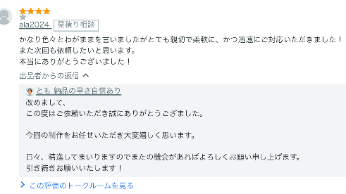 とも 納品の早さ自信あり