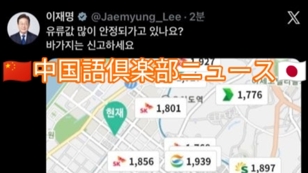 韓国の李在明(イ・ジェミョン)大統領は13日、SNS「X」(旧ツイッター)に投稿し、「本日から石油価格上限制度を全面的に施行する。もしガソリンスタンドで違反行為を見つけたら、すぐに私に教えてほしい」と述べた。