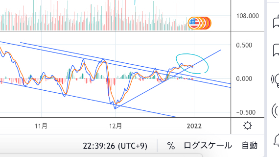 4時間足MACDがラインを割りかけてます。