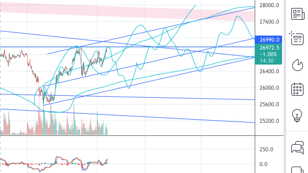 落ちれば26000、落ちないと28000を目指すか。