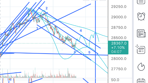 ひとまずこんな感じ。インパルス4波に入った可能性。ターゲットは28550。