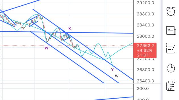 今の想定はこんな感じ。果たして27300まで落ちるかどうか。。