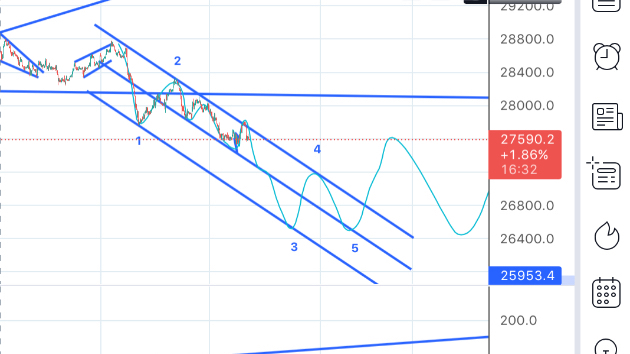 やはりインパルスの下げか?3波中5波が延長するパターン。仮にこれならターゲット26500の1000円級になる。