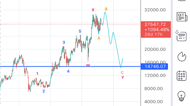 4波終点が修正の目安になるので30700あたりを天井にコロナのリバをゼンモしてくる想定