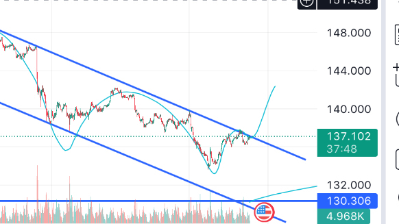 ちょっと雑ですが15分足レベルで山村が出現したので上抜けかも。