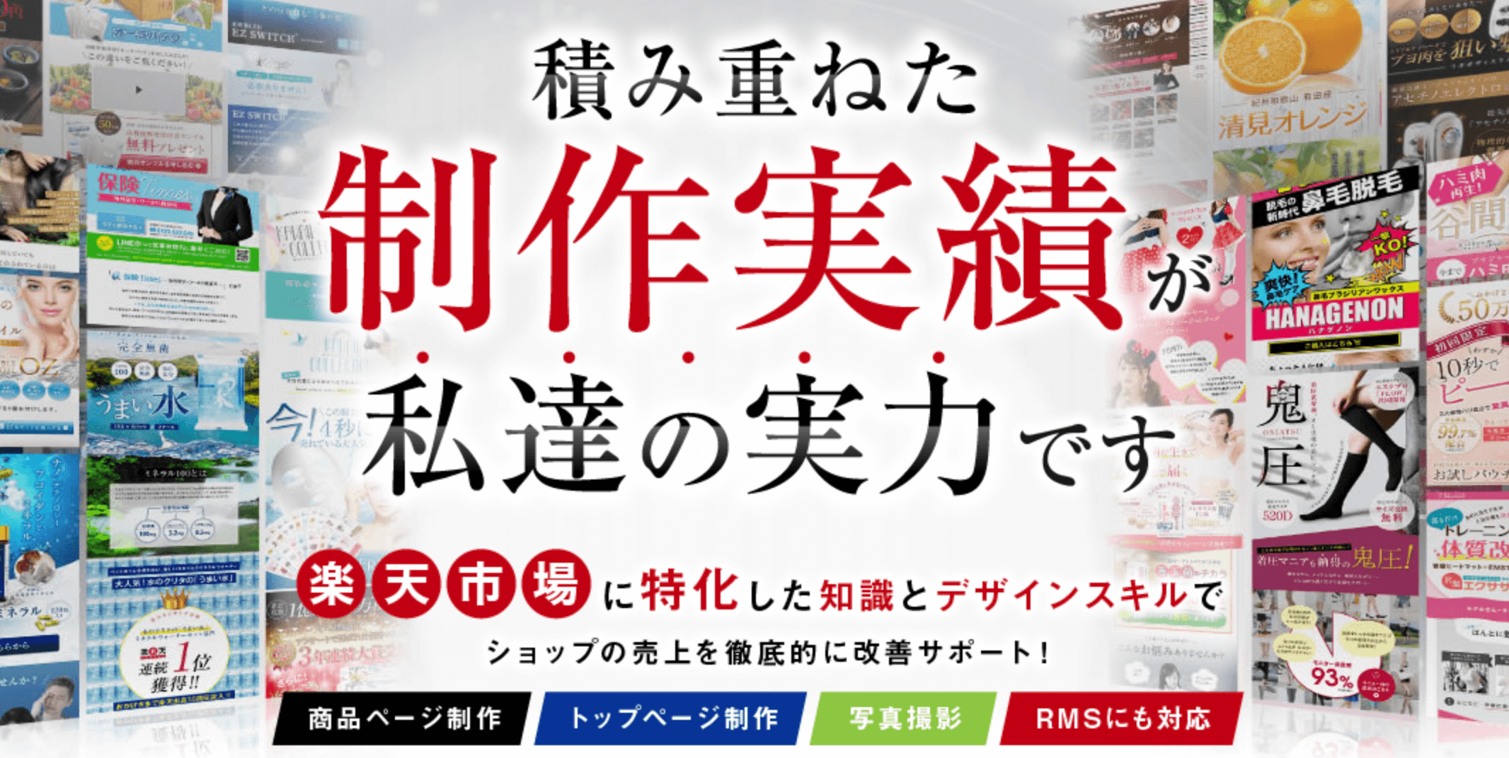 楽天市場に特化したデザイン制作が得意で、トップページ、商品詳細ページや特集ページなど、楽天市場のRMSでできることに詳しいのが特徴。