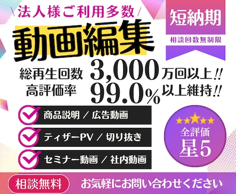 動画制作・アニメーション制作や写真の加工や画像編集を依頼するならココナラ。サービス紹介やブランディング、プロモーションに使う本格映像制作から、結婚式(ウェディング)や二次会・パーティーに使うプロフィールムービー・イベントムービーの制作依頼など、動画・アニメーションに関わることを気軽に相談・依頼することができます。また、画像クリエイターも多数在籍していますので、高度な編集加工の依頼も可能。動画や画像の制作ノウハウがなくてお困りなら、ぜひこちらからお探しください。お見積りが気になっている方も必見です。