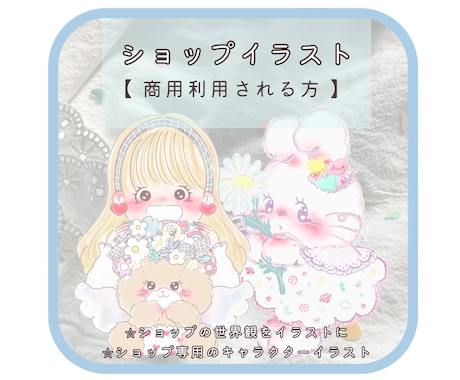 ちゃきさんのイラストに一目惚れしてショップイラストのオーダーをお願いしました♡どれも可愛く選べなくて追加で2枚計3枚のイラストをお願いしました。細かいところまでこちらの要望を聞いていただき想像以上の可愛いイラストが出来上がりとても幸せに想います♡ちゃきさんに描いていただき本当によかったです。またお願いしたいと思っています。これからもちゃきさんのイラスト楽しみにしております。本当にありがとうございました♡