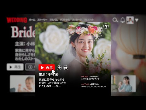 結婚式動画カテゴリには、ブライダル業界出身のクリエイターが多数在籍。単なる写真のスライドショーではなく、二人の生い立ちをドラマチックに繋ぎ、ゲストの涙を誘う高品質な映像体験を提供します。