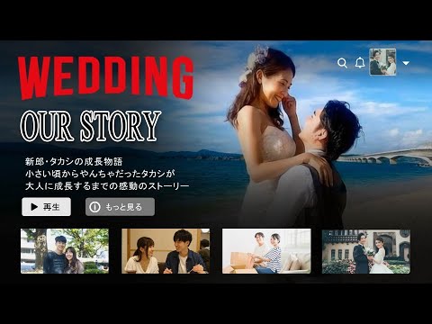 映画の予告編のような派手な演出や、二人らしいコミカルな紹介動画。ゲストの期待感を一気に高め、主役の入場を最高に盛り上げるためのインパクト抜群のビジュアルを提供します。