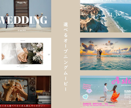 映画の予告編のような派手な演出や、二人らしいコミカルな紹介動画。ゲストの期待感を一気に高め、主役の入場を最高に盛り上げるためのインパクト抜群のビジュアルを提供します。