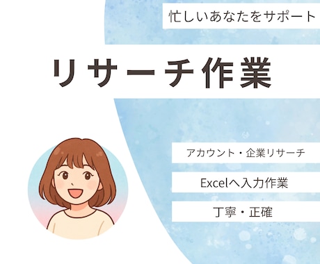 リサーチ・データ収集を今すぐお願いしたいときはこちら。市場調査をはじめ、企業データの収集やWebサイトのリサーチまで、面倒な調べ物を気軽にお願いできます。忙しくて調べる時間がない方、調査の方法がわからい方は必見です。