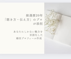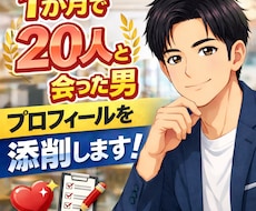 異性からの反応がいまいち?!そんなあなたのプロフィールをプロが徹底添削。ココナラに出品中の恋愛・婚活のプロたちがあなたの魅力を最大限に引き出します。会員登録無料、オンラインで即相談OK!