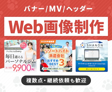 バナー1点 2,000円〜5,000円 広告・SNS用。