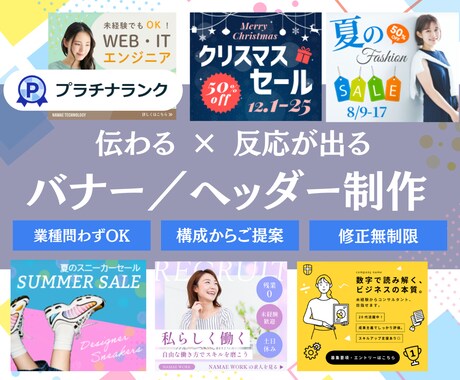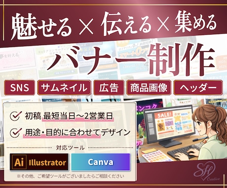 サイトの顔となる高品質なバナーやヘッダー制作をプロに直接相談できます。実績9万件超、1.2万人以上のデザイナーから好みのテイストを比較して依頼可能。制作会社よりお得に、1点からスピーディに作成できます。見積無料、チャットで直接プロに相談できるから安心。まずは見積相談で、サイトを魅力的に彩るデザイン制作をプロに依頼しましょう。