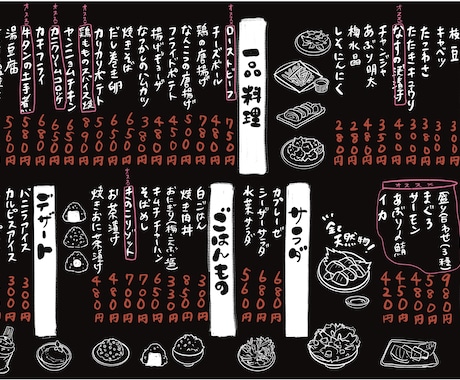 カフェ向けの北欧風、居酒屋向けの手書き筆文字、フレンチ向けの高級感あるデザインなど、幅広いリクエストに対応可能です。デザイナーのプロフィールページにある制作実績を確認して、自分のイメージに合う方を選びましょう。ココナラなら、バリエーション豊かな作成スタイルから選べます。
