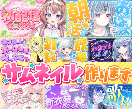 サムネイルカテゴリには実績8.0万件を誇るクリエイターが集結。スマートフォンの小さな画面でも文字がはっきり読め、かつ瞬時に内容が理解できる配色とレイアウトで、ユーザーのクリックを強力に誘発します。