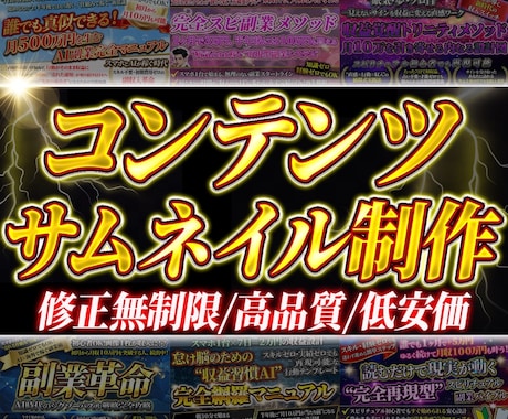 サムネイルカテゴリには実績8.0万件を誇るクリエイターが集結。スマートフォンの小さな画面でも文字がはっきり読め、かつ瞬時に内容が理解できる配色とレイアウトで、ユーザーのクリックを強力に誘発します。