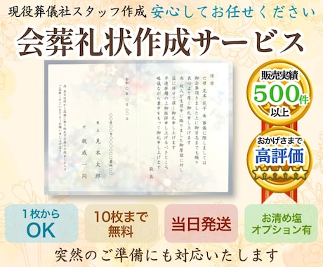 「葬儀社員が【会葬礼状】作成いたします by なべたの会葬礼状 なべたの会葬礼状 」が購入されました。
