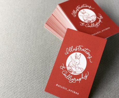 SNSアカウントやポートフォリオへの導線を重視。手に取った瞬間に印象に残る配色や特殊加工(箔押し、角丸等)の提案を受け、自分をブランディングする特別な一枚を形にします。