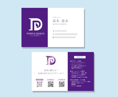 前回ロゴを作っていただきものすごくクオリティが高かったので名刺も作成していただきました。想像をはるかに超えた出来で大変満足しております。ありがとうございました。またなにかあればお願いしたいと思っております。
