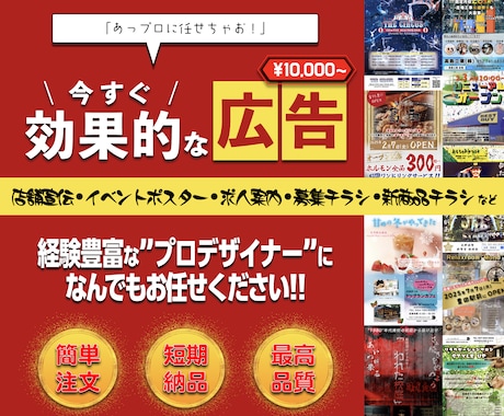 チラシ作成・フライヤーデザインを実績のあるプロのデザイナーに依頼することができます。デザインテイストや予算・納期など要望にあったあなたにピッタリのデザイナーを探そう!DMでの見積もり・相談は無料です。