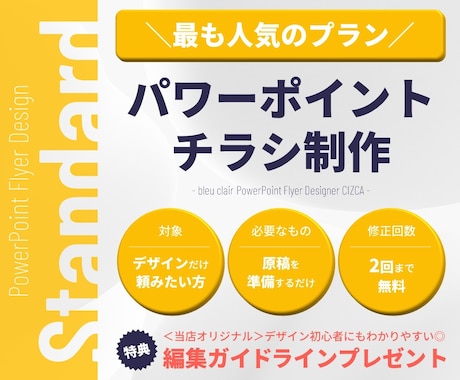 チラシ かっこいいはプロのデザイナーに依頼して他の人と差をつけよう。出品しているデザイナーは15,000人以上。予算やスケジュールにぴったりの方がきっと見つかります。ココナラは、オンライン上でデザイン発注できるサイトだから、ネット上で簡単依頼、できあがったデザインもデータで簡単受取!プライベート利用はもちろん、商業利用まで。驚きのハイクオリティが希望の予算に合わせて実現できます。