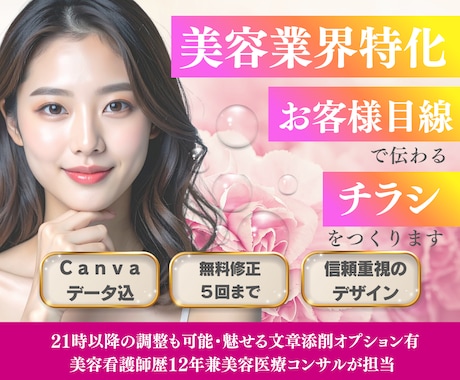 チラシ エステはプロのデザイナーに依頼して他の人と差をつけよう。出品しているデザイナーは15,000人以上。予算やスケジュールにぴったりの方がきっと見つかります。ココナラは、オンライン上でデザイン発注できるサイトだから、ネット上で簡単依頼、できあがったデザインもデータで簡単受取!プライベート利用はもちろん、商業利用まで。驚きのハイクオリティが希望の予算に合わせて実現できます。