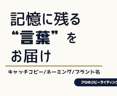コピーライティングを相場よりお得な価格から依頼することができます。社名や商品名のネーミング、人を惹き付ける面白いキャッチコピーを作成できます。英語やフランス語を使ったかっこいいお店のネーミングの制作や、自己PR用にキャッチフレーズ・コピーライティングを考えてくれるサービスも。キャッチコピーのセンスがないとお悩みの方、コピーライティングを頼みたい方は必見です。DMでの見積りや相談は無料です。料金が気になってキャッチコピー・ネーミングの制作依頼ができなかった方にもオススメです。