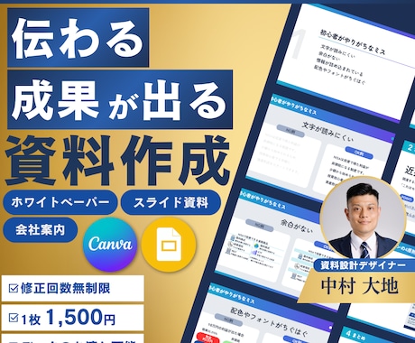 資料の枚数や内容により異なりますが、1枚あたり数千円からや、1案件数万円からなど、予算に合わせて選べる幅広いプランがあります。支払いはクレジットカードやコンビニ決済、銀行振込など多様な方法に対応しており、ココナラが仲介するため安心です。まずはサービスを比較して、予算に合う依頼先を検討しましょう。