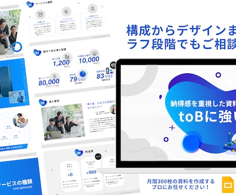 デザインのプロが作成することで、情報の整理と視覚化が最適化されます。情報の整理と視覚化により、説得力の高い資料作りを支援。ビジネス成果の最大化をバックアップします。