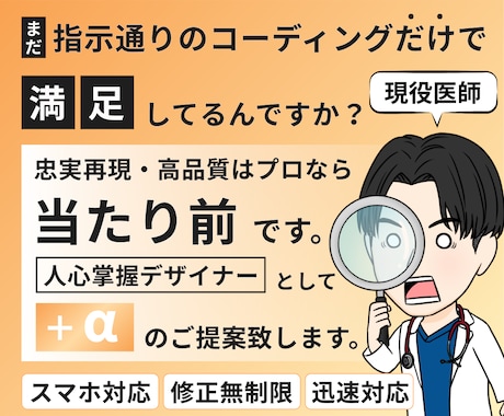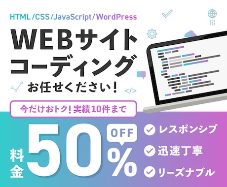 高品質なHTML/CSSコーディングをプロに低予算で直接外注できます。実績1.5万件超、4,000名規模のエンジニアが理想のデザインを忠実に再現。制作会社よりコストを抑えてスピーディに完了させることができます。レスポンシブ対応やNDA対応も安心。見積無料、まずはチャットで納期や仕様をプロに直接相談しましょう。