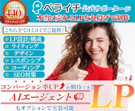 プロは売れるための構成(セールスライティング)やCV改善のノウハウを持っているため、自作に比べて成約率に圧倒的な差が出ることが多いです。ココナラなら制作会社よりリーズナブルな料金で、手間を省きながらプロクオリティのLPを作成できます。
