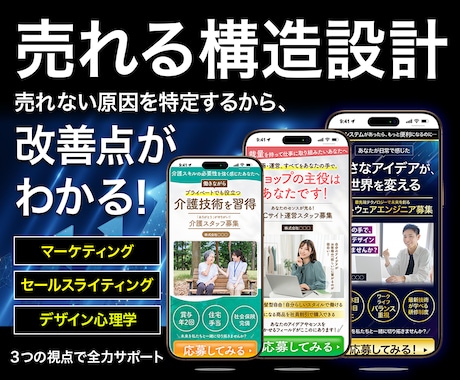 「アクセスはあるが売れない」「スマホで見づらい」といった既存の課題をプロが分析。ヒートマップ分析に基づいたレイアウト変更や、現代のトレンドに合わせたデザイン刷新により、広告費を増やさずに売上を最大化させます。