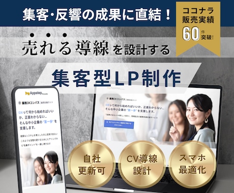 LP作成において実績2.2万件、出品者数5000人を誇る専門家が在籍。単に綺麗なデザインを作るだけでなく、ユーザー心理に基づいたストーリー構成やセールスライティングを駆使し、訪問者を確実なアクション(購入・成約)へと導きます。
