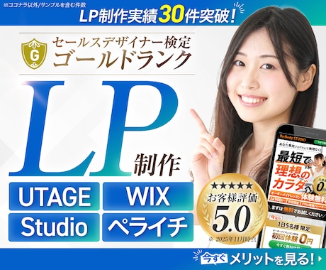成約率を高める売れるLP作成をプロに直接相談できます。実績2万件超、4,500名以上の専門家から、広告成果を最大化させる高品質なページ制作を依頼可能。制作会社よりリーズナブルに、勝てる構成とデザインを低予算で実現できます。見積無料、修正相談もスムーズです。まずは相談して、コンバージョンに繋がる高品質なLPを手に入れましょう。