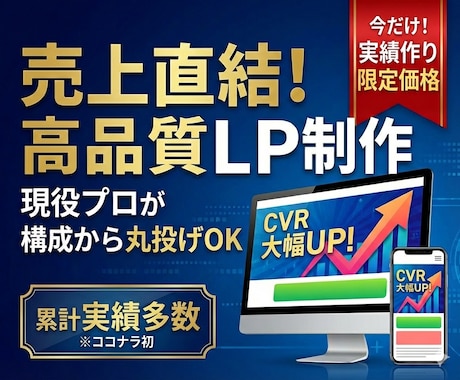 制作会社では分業されることが多い「コピーライティング」「デザイン」「コーディング」を、ココナラなら一人のプロにまとめて依頼可能。中間マージンをカットした納得の価格で、各工程がシームレスに連携した高品質なLPが手に入ります。