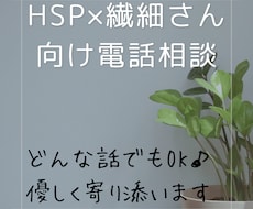 ◆サービス内容 HSPさんが安心して話せる、やさしい電話相談を行います。 責めません、否定しません、結論を急ぎません。 「ただ聞いてほしい」そんな時間でも大丈夫です。 ...